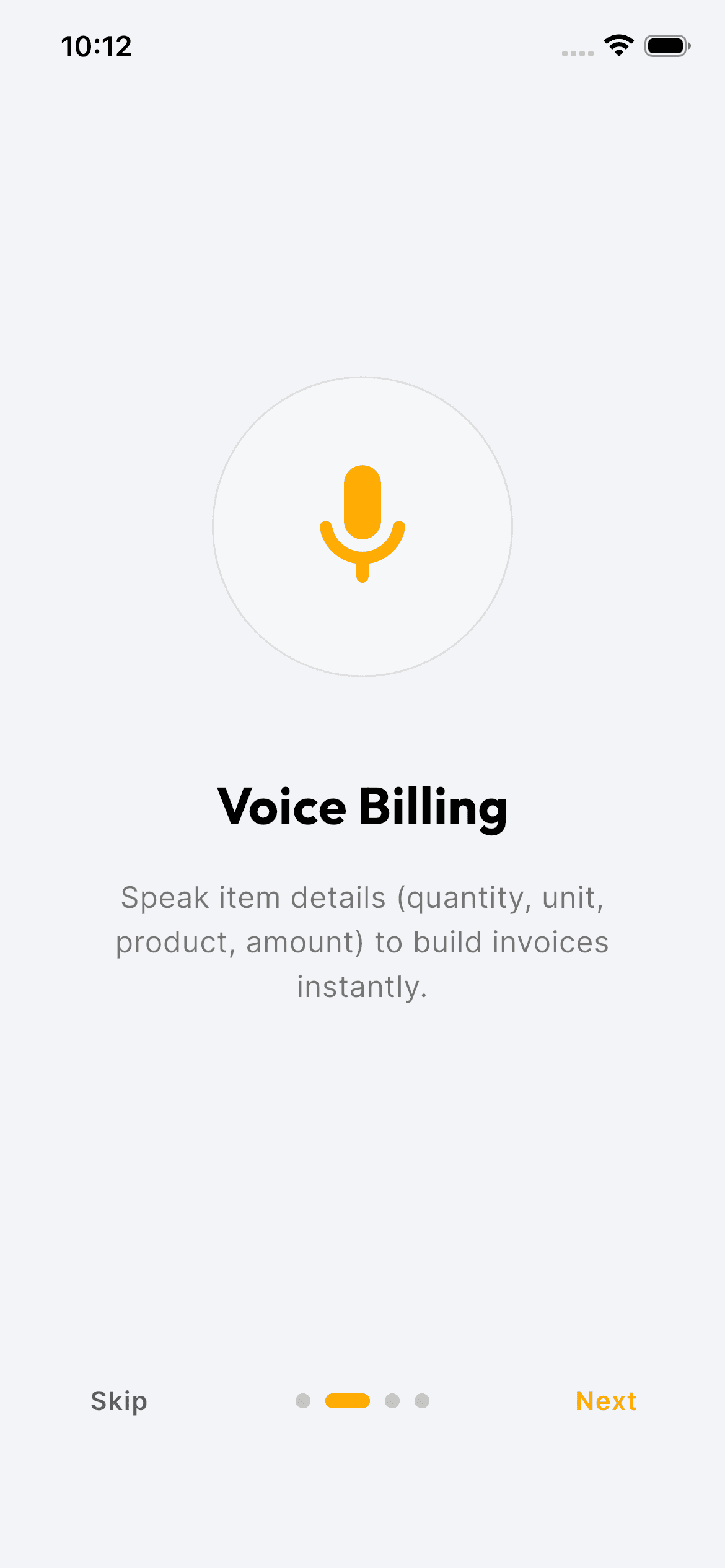 Simply speak the details of your invoice - items, quantities, prices, and customer information.
